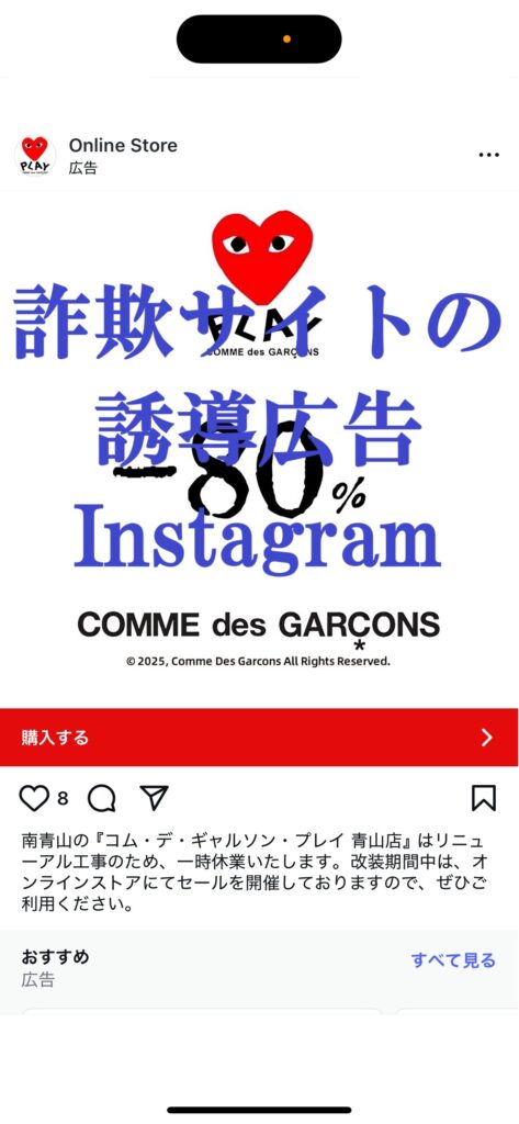 Instagram広告に出てきた詐欺サイト・偽サイトの情報です。