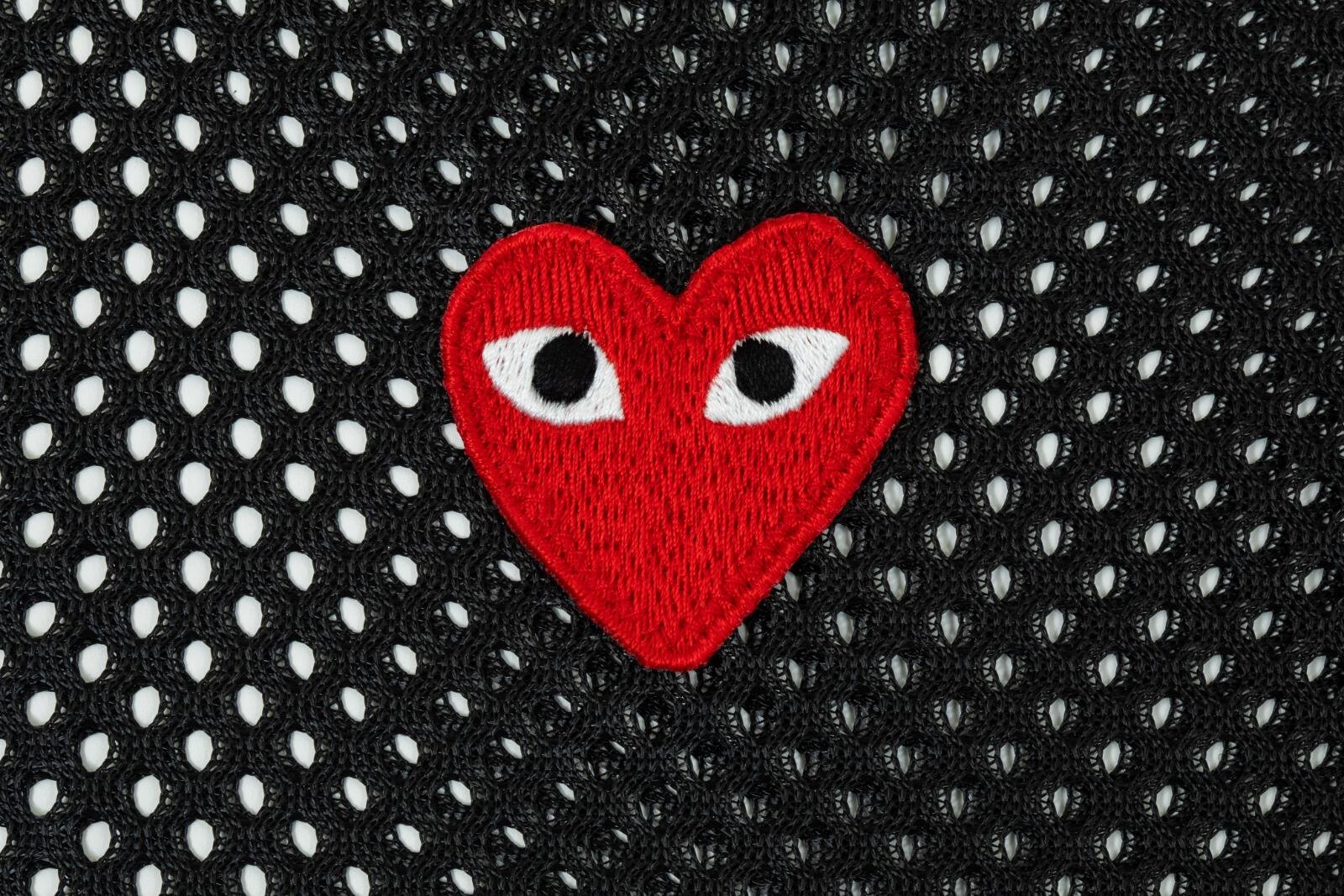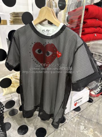 プレイ コムデギャルソン 赤ハート メッシュTシャツ-黒-